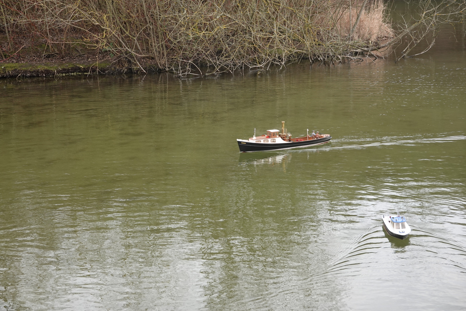 Wir haben am 1. Jan. 2024 zum Silvesterfahren eingeladen und es sind 10 Modellbauer gekommen, um gemeinsam ins Neue Jahr zu Starten. Das Wetter war angenehm, wir brauchten keinen Eisbrecher und es war auch nicht sooo kalt.